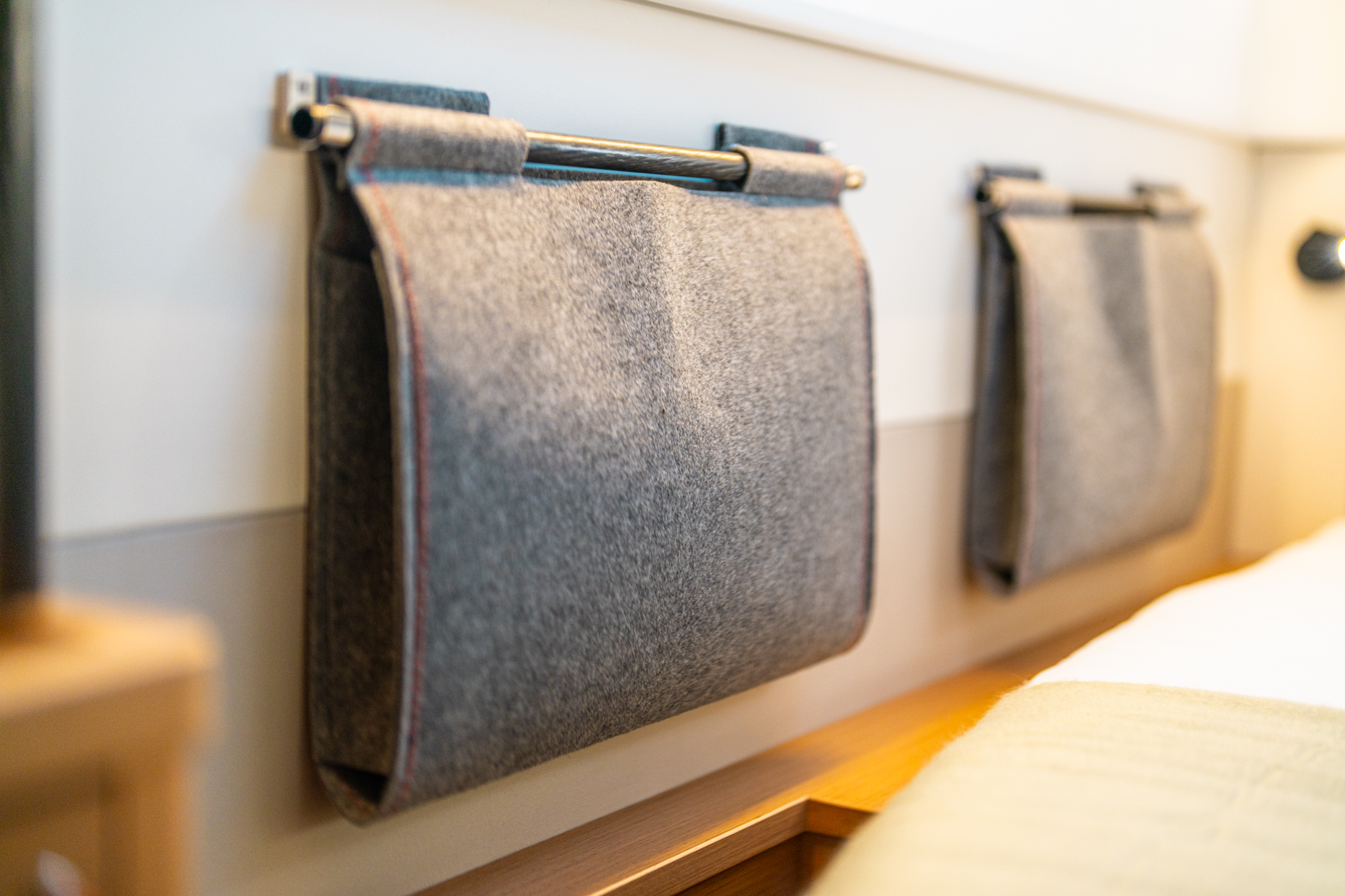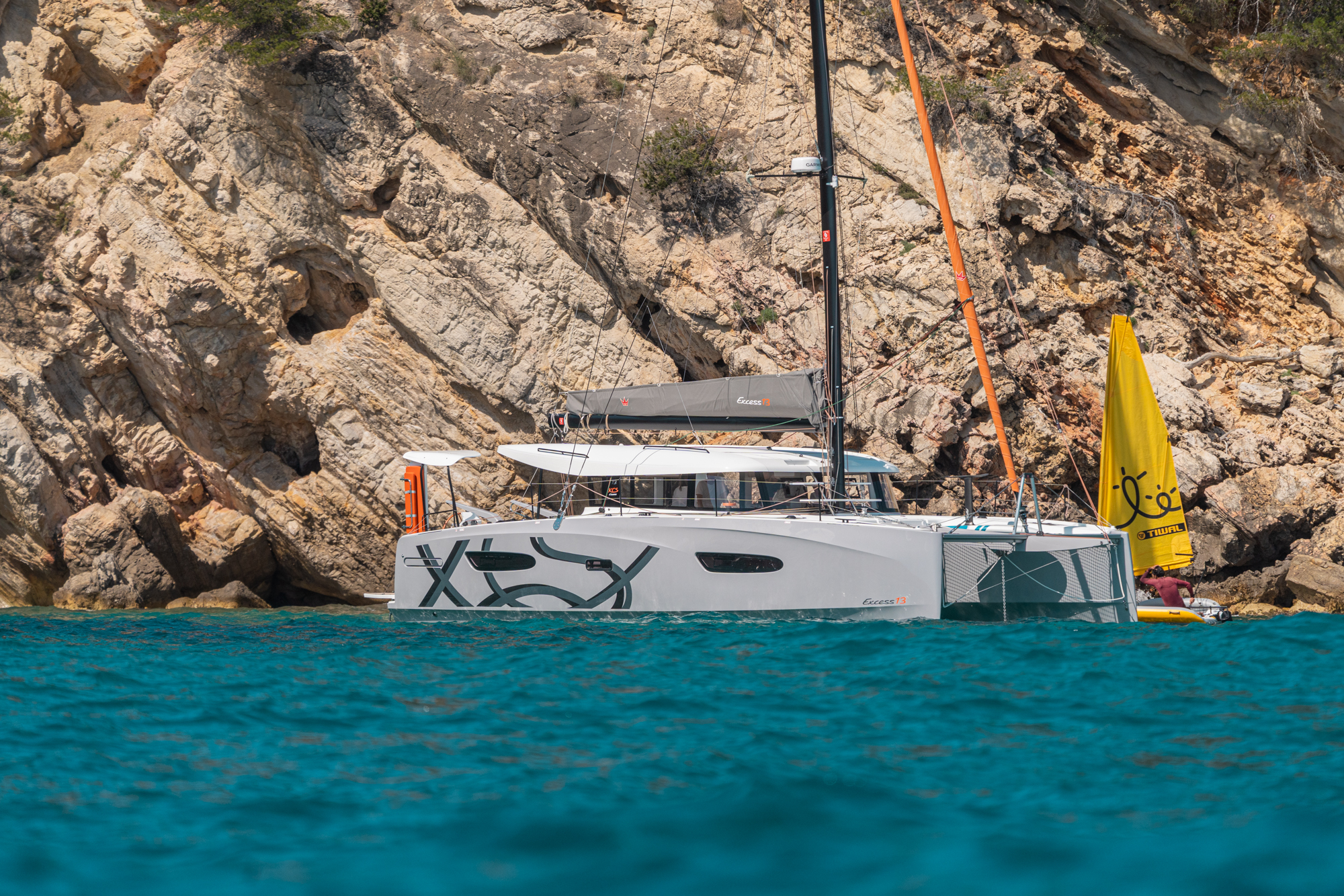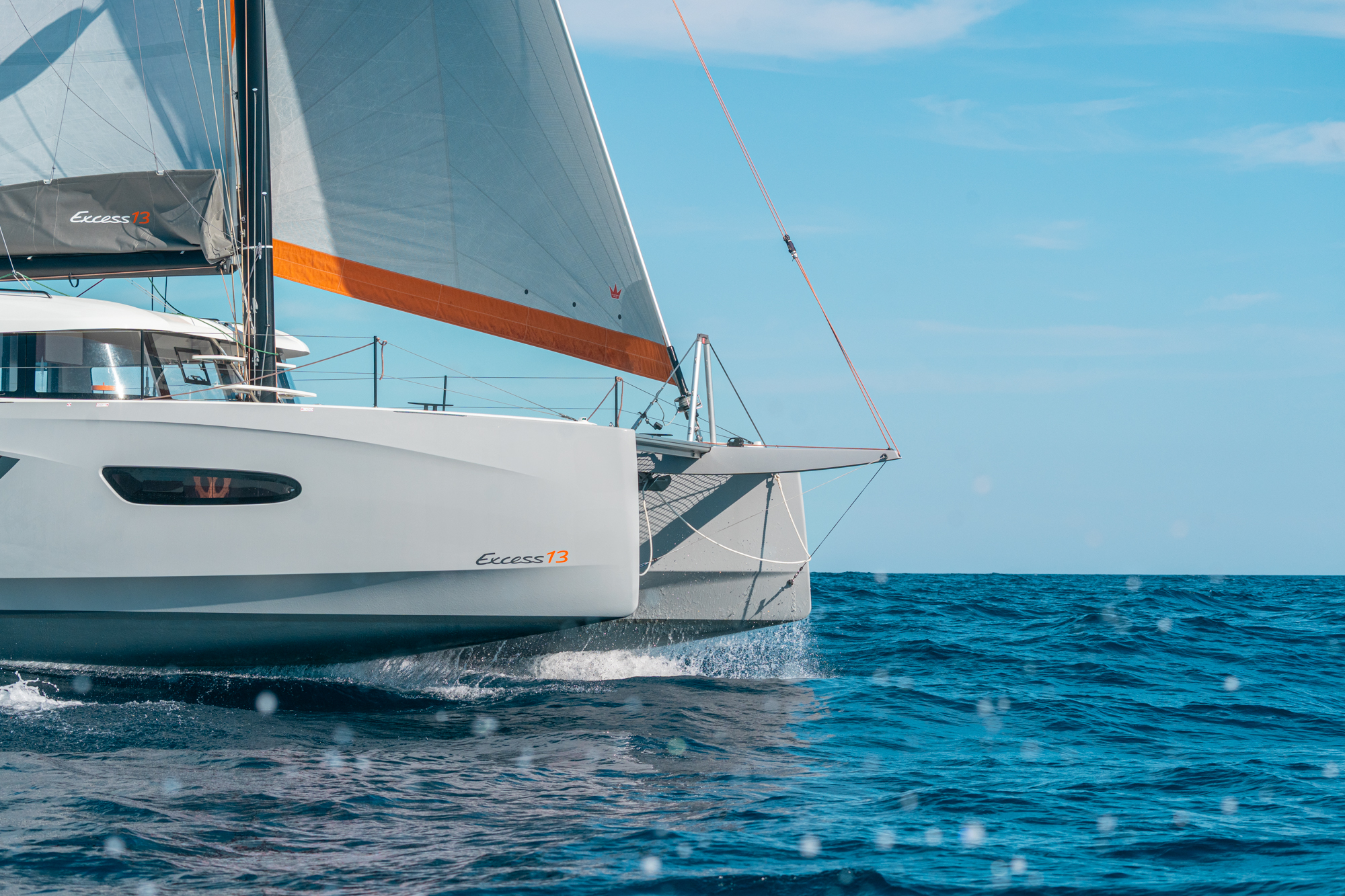 Like its predecessor, the Excess 13 uses the principle of asymmetrical hulls. These are finer in beam below the waterline, guaranteeing excellent performance and easy gliding through the water, all while maintaining living space. The real innovations concern the structure, where all the creativity has been devoted to lightening the weight. The result is invisible, but you can feel it.