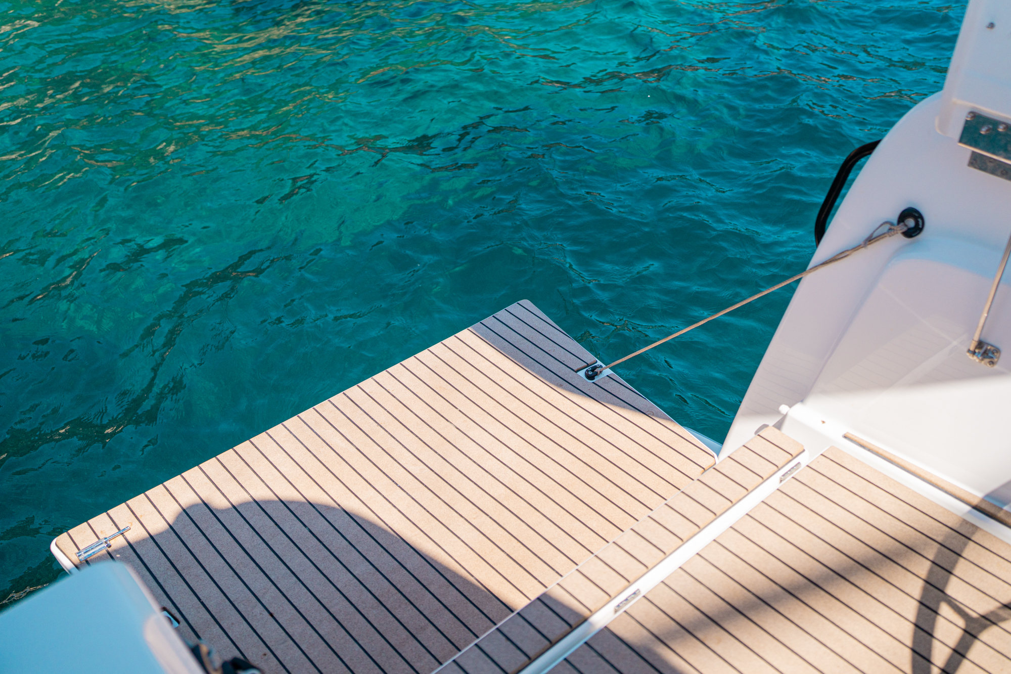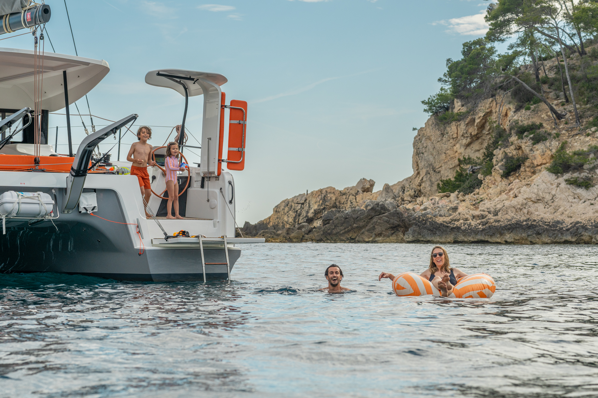 The monohull-inspired access to the sea via fold-down sugarscoops combines safety and efficiency.
