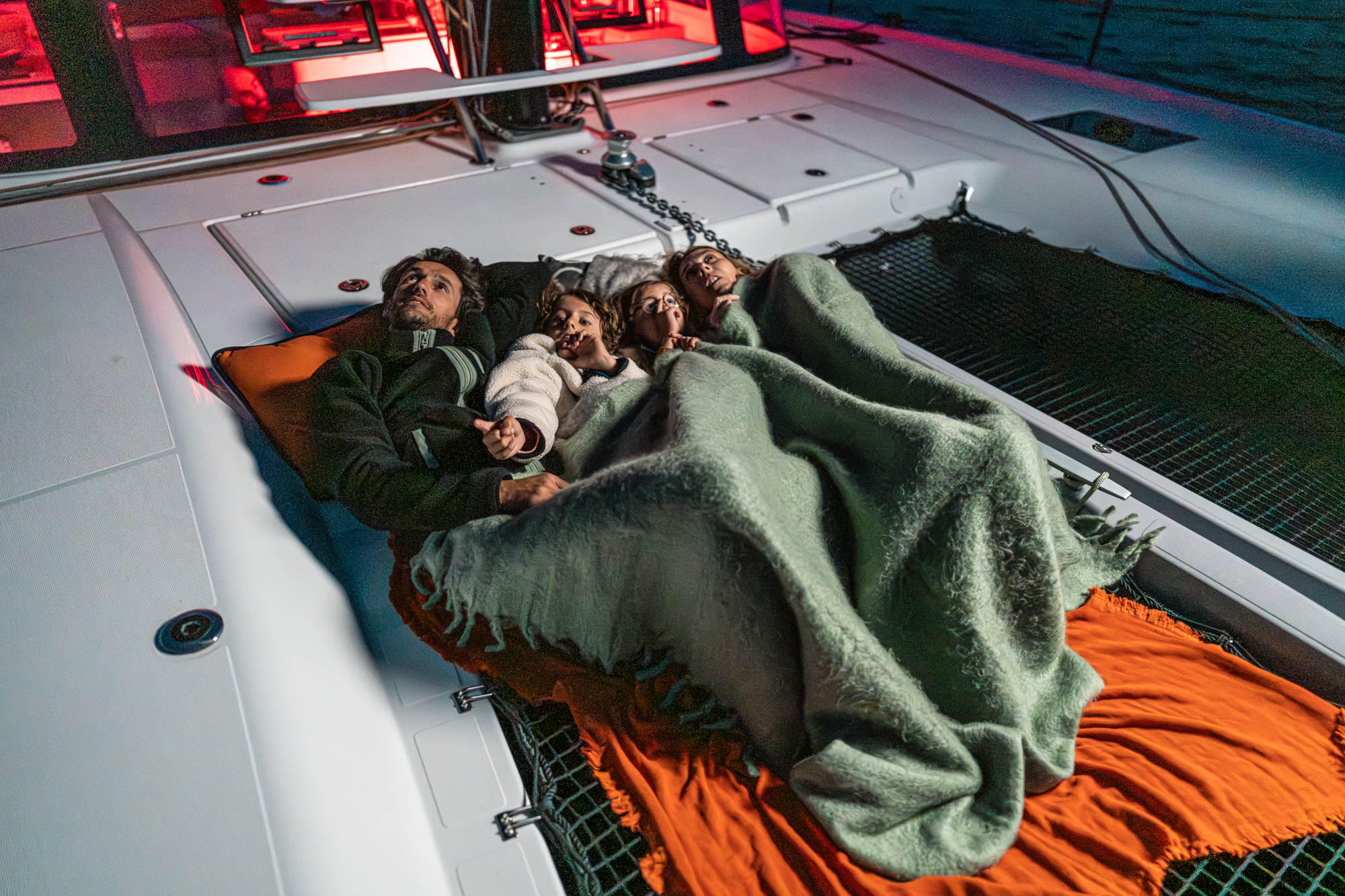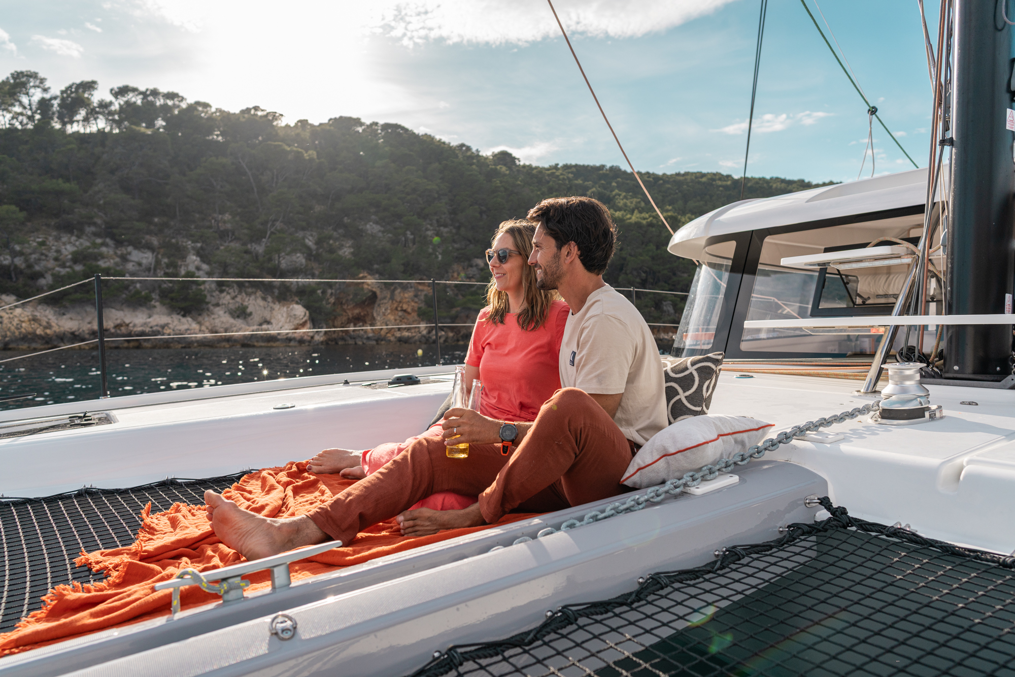 In the opposite hull, guests enjoy two cabins and two private bathrooms.