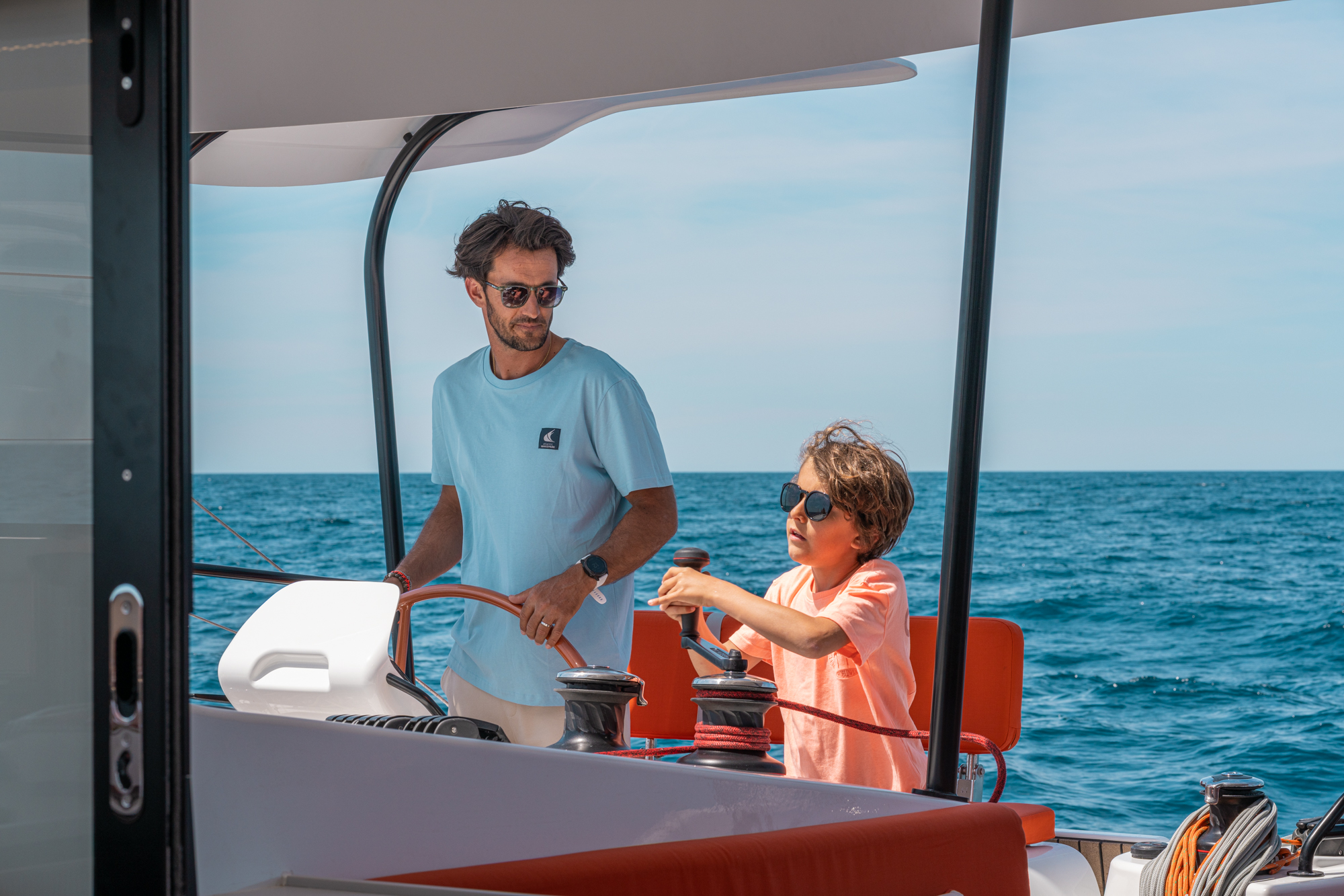 The Excess 13 is a cruising catamaran, a true sailboat capable of ocean passage-making. The potential is felt as soon as you leave harbour, giving you an intoxicating sense of freedom. The very direct helm allows you to feel the connection with the sea and fine-tune everything. Sensations are increased exponentially. The forward-facing chart table keeps you in touch with the elements and allows you to navigate with pinpoint accuracy.
